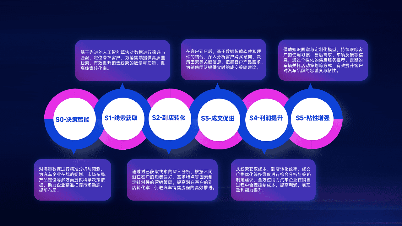 通过拓宽潜在客户来源、、优化线索分配并提高到店转化率,,以增强销售效率。。同时,,,,利用线索数据不断优化分析模型,,,有效提升转化率,,扩大营销影响力。。。。